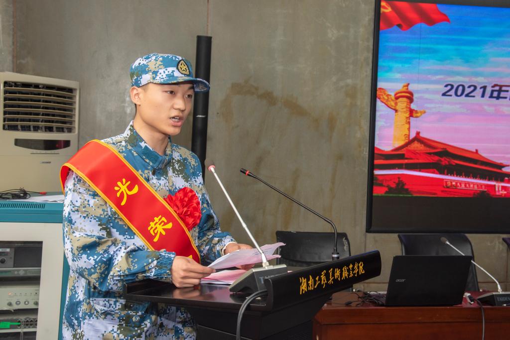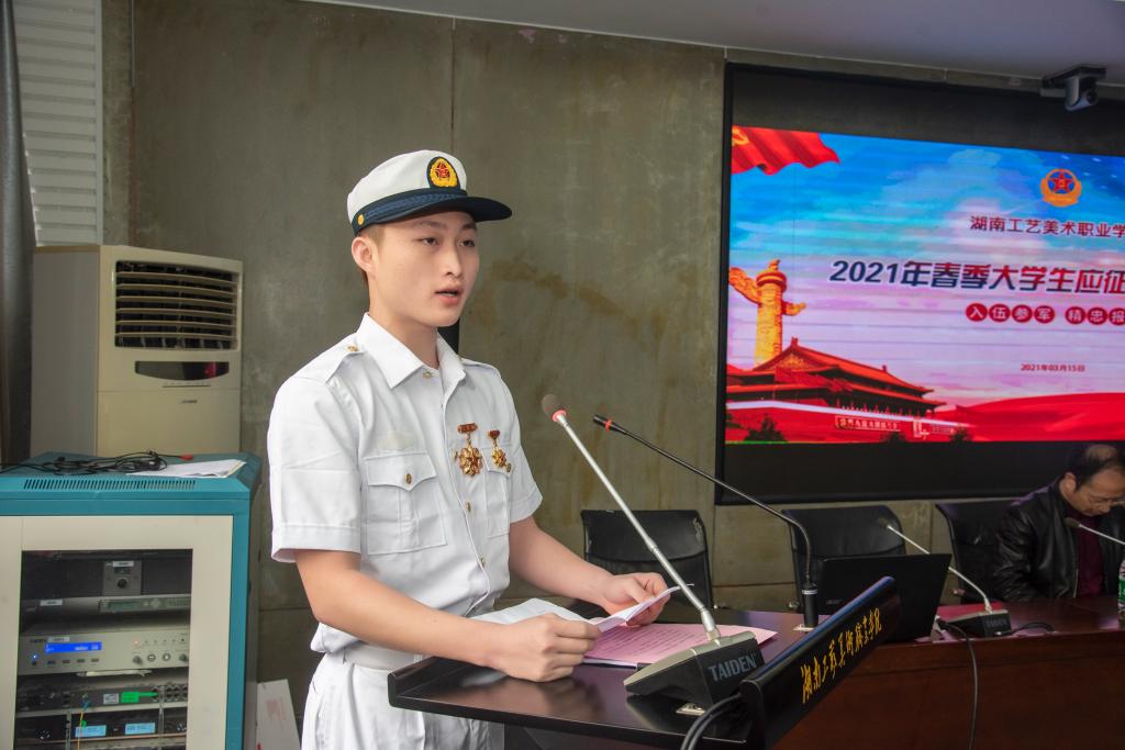 环境艺术设计学院建筑动画1901班刘宏玲作为老兵代表发言。他分享了两年军旅生活的体会,希望入伍新兵传承红色血脉,做一名平凡而伟大的军人。