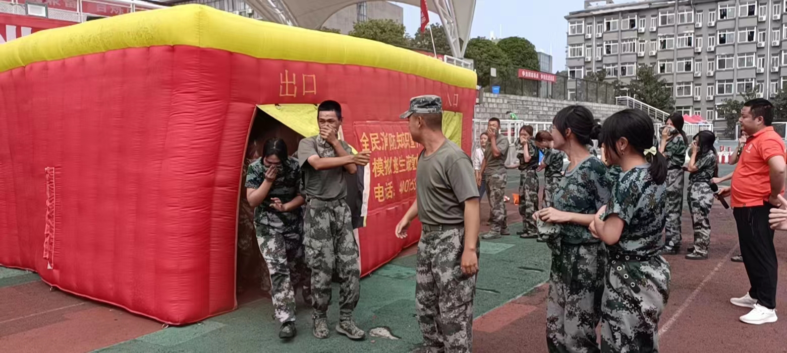 9月28日下午,我校举行2022级新生消防演习活动,此次演习分为灭火实操演习与模拟烟道逃生两部分。