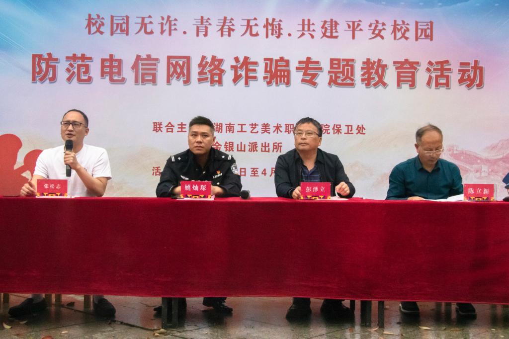 4月3日下午,我校2023年防范电信网络诈骗宣传周启动仪式在艺术广场举行。副校长彭泽立,金银山派出所所长,学校相关单位负责人,各学院分管学生工作领导,各单位安全员、反诈专项负责老师,部分教职员工、学生代表等共计600余人参加了活动。