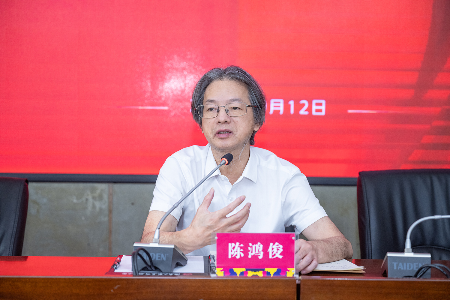第三项议程由学校党委书记陈鸿俊对学校安全稳定工作做指示,指出做好学校安全工作需树牢安全观、练就安全眼、织密安全网,抓实抓细各项安全稳定工作,确保校园安全、稳定、和谐。
