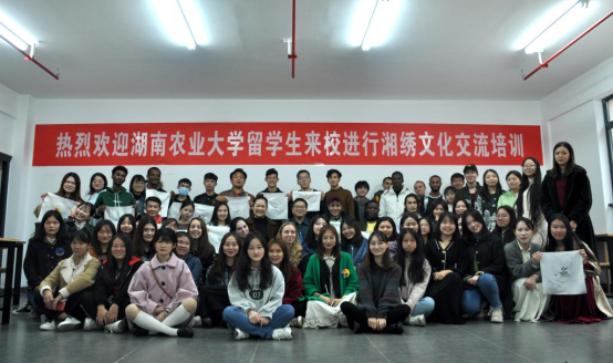 支部党员指导来校进行湘绣文化交流的留学生