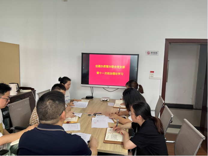 6月27下午,创建办、质管办联合党支部在党员活动室开展2023年上学期第十一次教职工理论学习,本次活动由侯丽华主任主持,创建办、质管办联合支部部分党员及教职工参加学习。