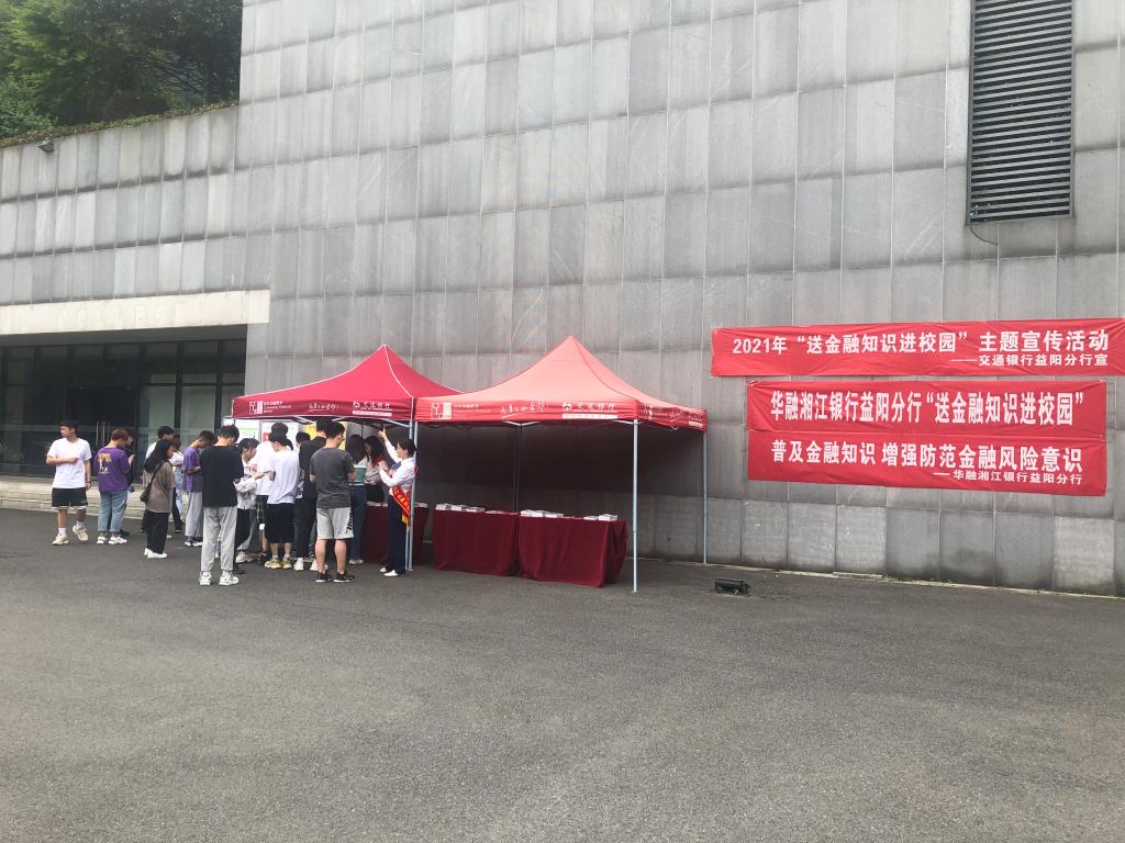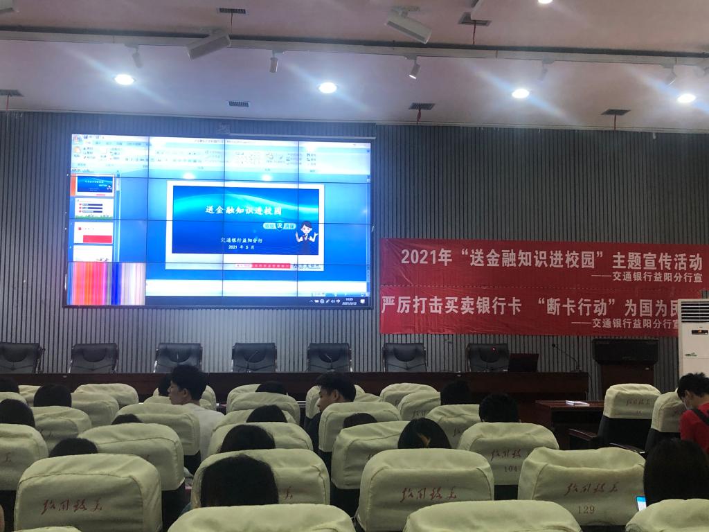 为落实党史学习教育“我为群众办实事”实践活动,2021年5月12日,财务处、工会联合党支部联合交通银行益阳分行资阳支行党支部,在学校举办了一期“金融知识进校园”专题活动,采用邀请业内专家讲座、金融知识有奖问答、现场分发宣传资料、一对一答疑服务等形式,为学生普及金融知识,提升学生金融安全防范意识与增强防诈骗能力,防范和降低诈骗案件发生。