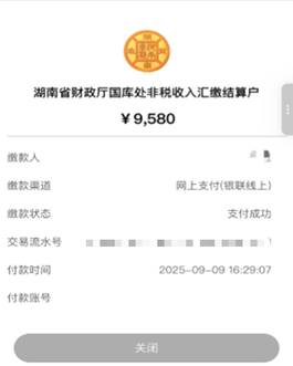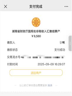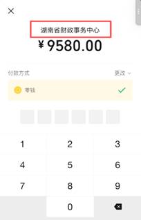 ④进入支付页面,核对唯一收款单位“湖南省财政事务中心”,点击支付,缴费成功后可在支付记录中下载电子缴款书。