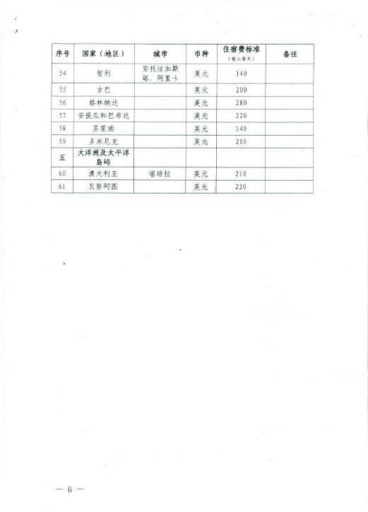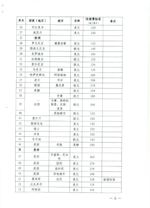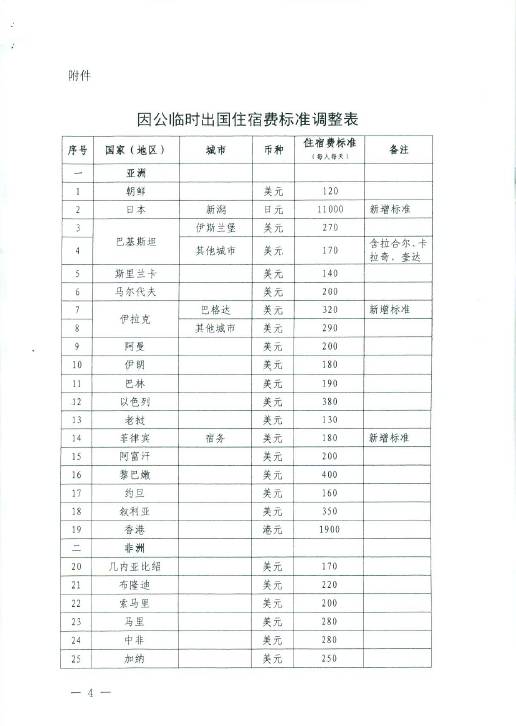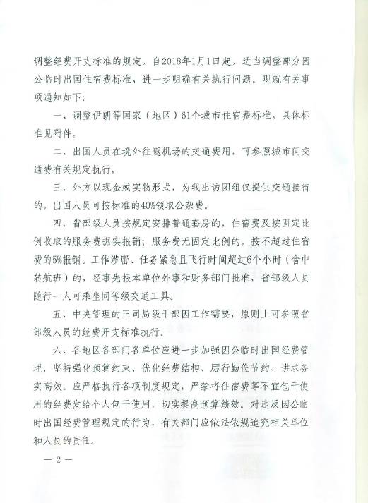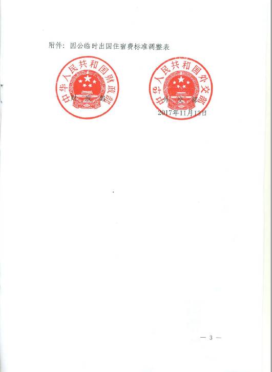 外交部关于调整因公临时出国出国住宿费标准等有关事项的通知(财行2017 434号)