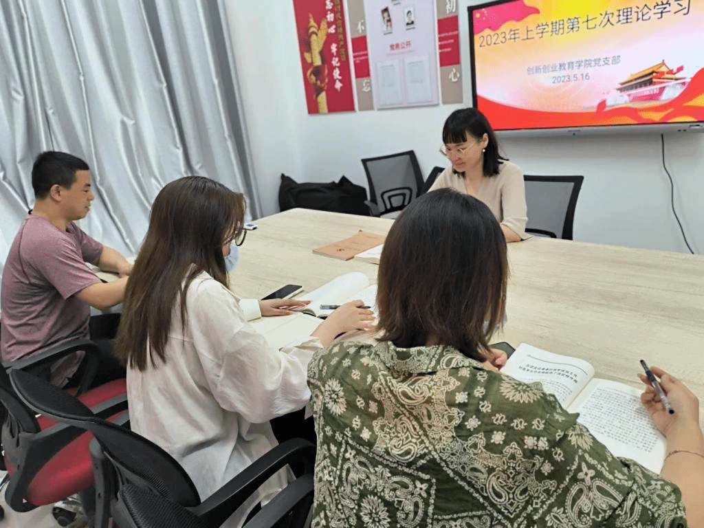 5月16日下午,创新创业教育学院党支部在党员活动室召开了本学期第七次教职工政治理论学习。本次学习由组织纪检委员匡晓华主持。