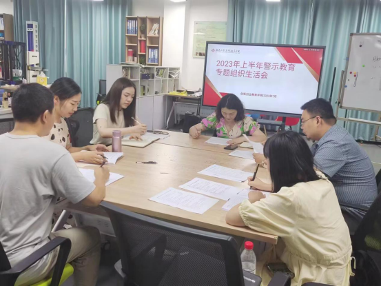 7月8日下午,创新创业教育学院党支部在创客空间召开了2023年上半年警示教育专题组织生活会。本次会议由青年宣传委员李晚晴主持。