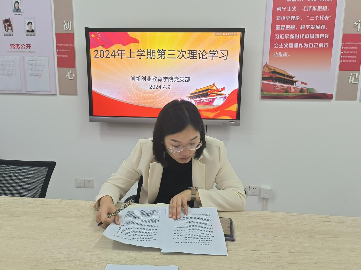 4月9日下午,创新创业教育学院党支部在党员会议室召开了本学期第三次教职工政治理论学习。本次学习由支部书记杨丽敏主持,支部在校教师参加了学习。