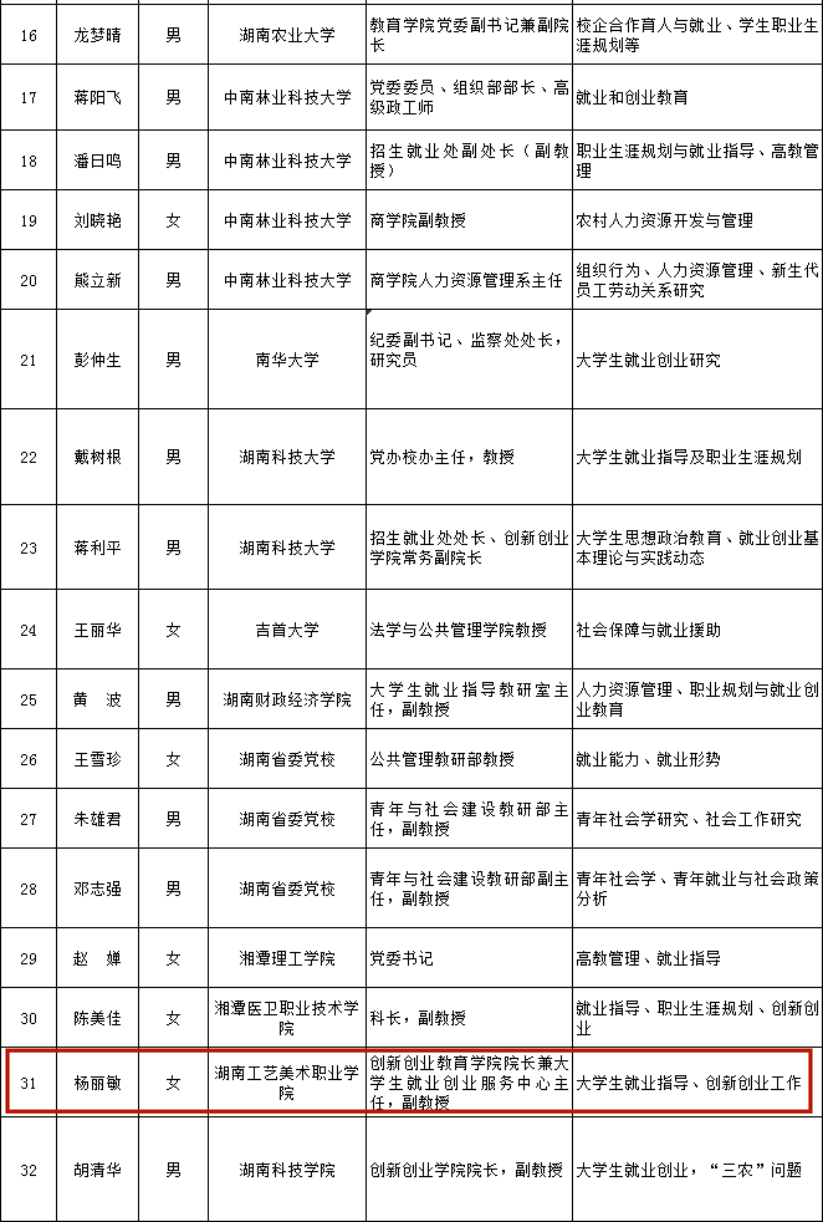 近日,湖南省人力资源和社会保障厅印发了《关于成立湖南省就业领域专家库的通知》,我院教师杨丽敏作为益阳市代表成功入选湖南省就业领域专家库成员。