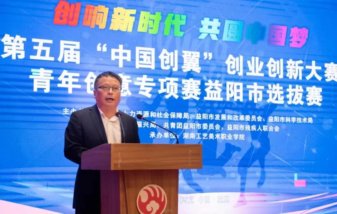 为营造益阳市创新创业氛围,促进创业带动就业,助力推进乡村振兴,5月5日,第五届“中国创翼”创业创新大赛“青年创意专项赛”益阳市选拔赛决赛在我校举行。学校党委书记余克泉、共青团益阳市委书记谭罗垠、益阳市就业服务中心副主任张伟出席开幕式,决赛开幕式由副校长彭泽立主持。