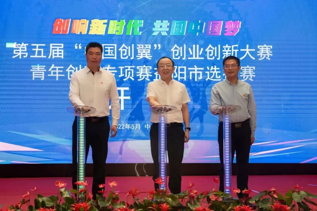 余克泉、谭罗垠、张伟三人共同点亮开幕式启动仪,宣布第五届“中国创翼”创业创新大赛“青年创意专项赛”益阳市选拔赛决赛开幕。