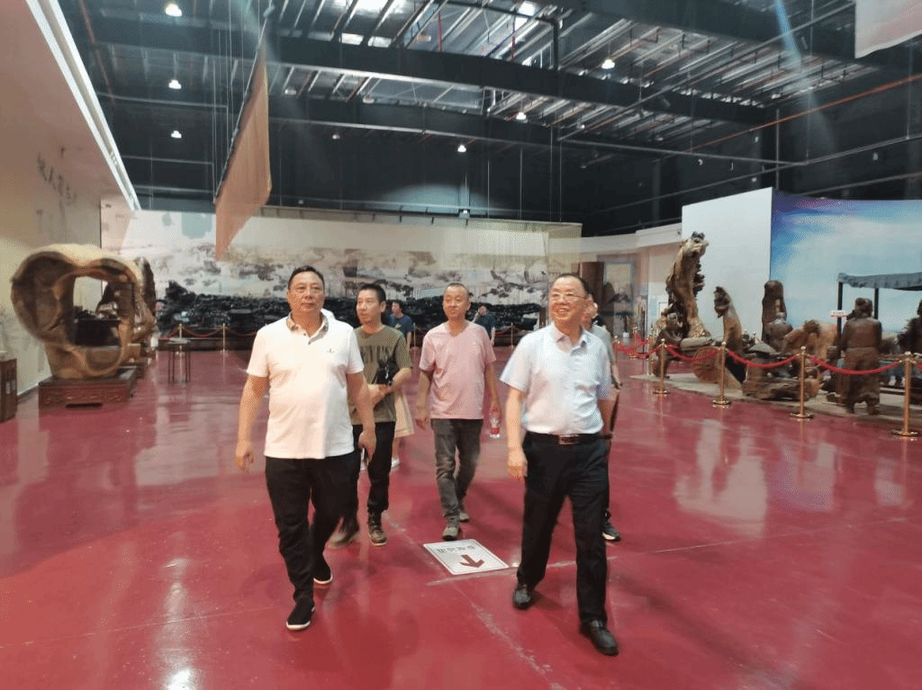 天意木国总裁熊明瑞对余克泉一行的到来表示热烈欢迎,并引导参观了天意木国展示区,展示区目前有天意馆(序厅)、天合馆(精品馆)、天成馆(原木馆)、天趣馆(动物馆)、天台馆(茶台馆)、天灵馆(罗汉馆)六个展馆,占地286亩,面积42000平方米,投资达2.8亿元,展馆内包含以金丝楠、黄花梨等名贵木种为材料作品达万余件、国宝级作品11件、国家一级作品18件,作品价值无法估量,作品种类堪称世界之最。