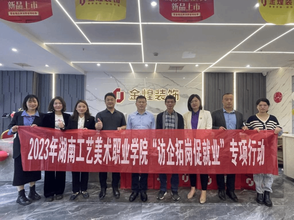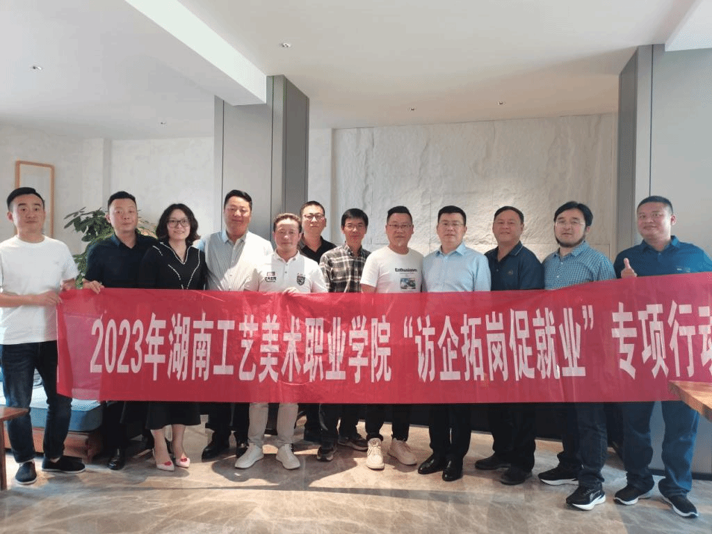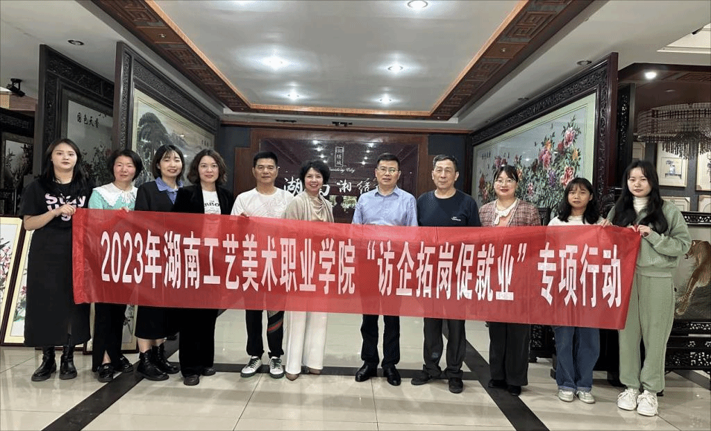 根据学校深入开展学习贯彻习近平新时代中国特色社会主义思想主题教育实施方案和调查研究工作方案安排和学校2023届毕业生春季促就业攻坚行动暨访企拓岗促就业专项行动实施方案,5月6日至5月12日,党委委员、副校长带队赴湖南省湘绣城集团、湖南金煌装饰有限公司、湘潭昭山文化产业园、湖南如艺文化发展有限公司、湖南亦境设计公司、湘潭九根藤装饰有限公司等单位开展“访企拓岗促就业”专项行动和就业工作专题调研,创新创业教育学院、环境艺术设计学院、数字艺术学院、视觉传达设计学院负责人参加调研。