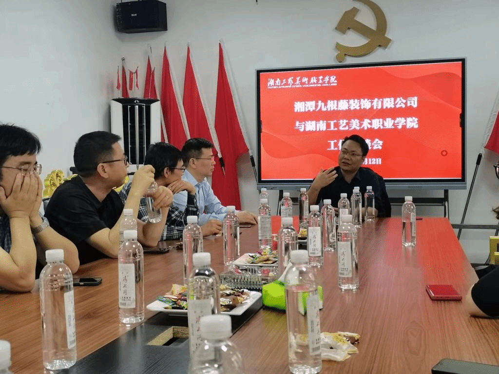 5月12日,张华一行调研湖南如艺文化发展有限公司,参观了湘潭昭山文化产业园、公司展厅、直播间。座谈会上,公司创始人、董事长、2005届旅游产品设计专业校友吴小兵介绍了企业情况和用人需求。他希望能与母校在实习就业工作、项目合作、作品创作、人才培养等方面实现互利共赢,并对母校人才培养、专业建设、课程开发、就业推荐等方面提出了建设性意见。张华介绍了学校近年来发展成就、专业特色、人才培养、毕业生资源信息等情况。他表示,本次“访企拓岗促就业”专项行动,既是促就业、稳就业的专项工作,更是一次“调研之旅”,希望学校和企业能以此为契机,在产学研合作、人才培养与供需、毕业生实习就业等方面进一步深化合作。在湖南亦境设计有限公司,合伙人刘晓峰对目前公司发展、将来的人才招聘结构等进行了系统介绍。座谈会上,张华表示,当前学校正处于奋力实现“建成中国特色高水平学校”“升格本科层次职业学校”的“登高”“升级”高质量发展目标的关键时期,希望与湖南亦境设计公司在更宽领域更深层次开展校企合作,为设计行业企业培养更多高素质技术技能人才。在湘潭九根藤装饰有限公司,张华一行人参观了产品车间和样板房。双方表示,将始终秉承“优势互补、资源共享、互惠共赢、共同发展”的原则,建立长期、紧密的合作关系,推动校企合作迈向新台阶。调研中,三家公司均授牌为学校“大学生就业创业基地”。