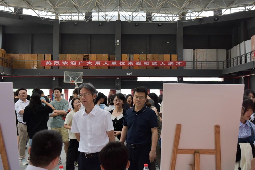 招聘会上,学校党委书记陈鸿俊带队走访了参加招聘会的企业和学生,与企业亲切交谈,询问招聘、求职的相关情况,并表示学校会竭力为大家做好服务,在详细了解用人单位和学生需求的情况下,鼓励同学们积极主动就业,做自己职场的“主人翁”。