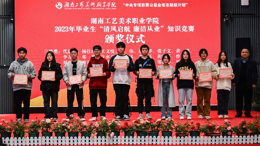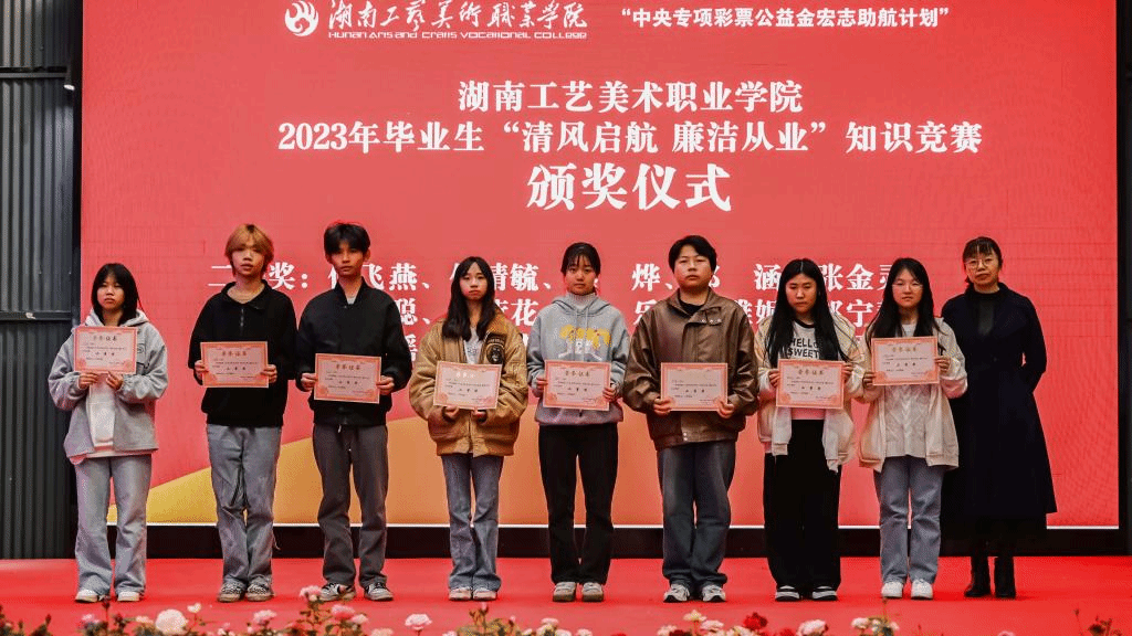11月至12月,学校举行了2023年毕业生“清风启航 廉洁从业”网络知识竞赛,经过1个多月的比赛,共有3157名学生参与了网络知识竞答,评选出一等奖5名、二等奖15名、三等奖30名、优秀奖250名。在12月5日的校园招聘会启动仪式上,学校党委书记陈鸿俊、校长夏能权、纪委书记郑雄分别为“清风启航 廉洁从业”网络知识竞赛获奖的一、二、三等奖学生颁奖。获得本次大赛一等奖的欧阳金善同学说:“以前觉得‘廉洁’距离我们很远,其实廉洁教育意义重大,我将牢记廉洁从业的规章制度,始终保持清醒的头脑,将所学所悟转化成力量,指导自己职业发展。”在颁奖仪式的现场,湖南金煌建筑装饰设计工程有限公司人力资源部经理肖霄表示,“第一次在校园招聘会上看到了毕业生廉洁从业的承诺签名,学校还组织了廉洁从业的知识竞赛,这让我们用人单位很欣赏,工艺美院培养的学生不仅有过硬的专业技能、综合素养,还品质优良,这样的毕业生我们用的放心,这也是我们每年多轮次来校揽才的重要原因。”