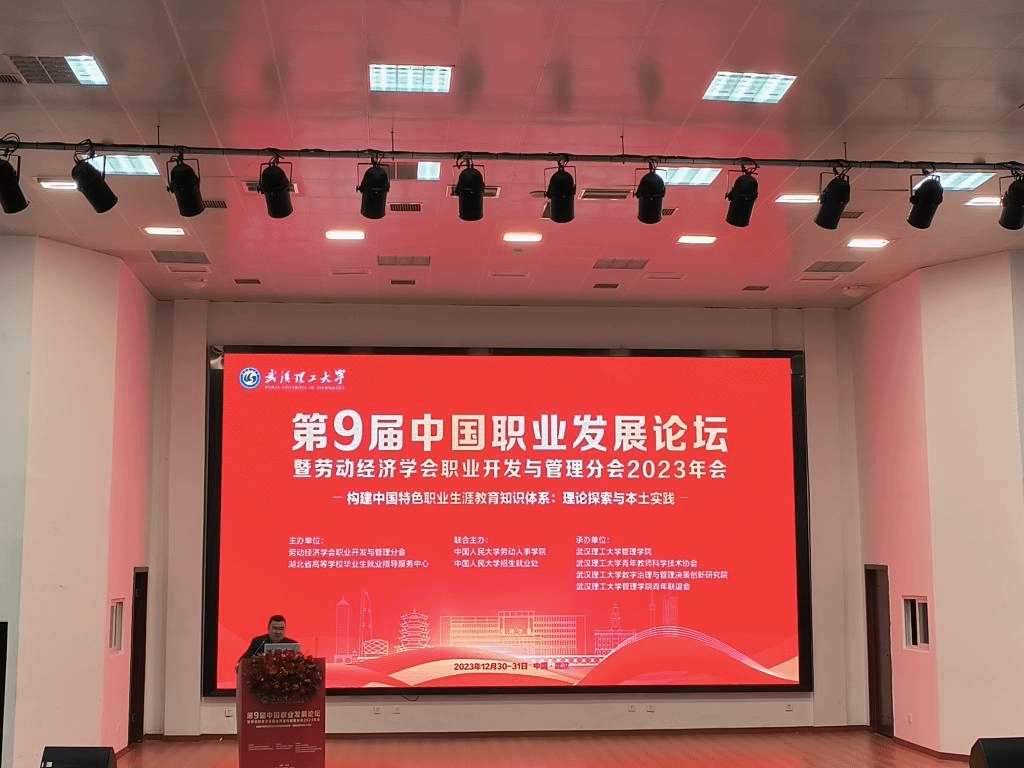 12月30日-31日,第9届中国职业发展论坛在暨劳动经济学会职业发展与管理分会2023年会在武汉理工大学举行。活动由劳动经济学会职业发展与管理分会、湖北省高等学校毕业生就业指导服务中心主办,来自全国130余所高校的380多名师生、企业代表参加了本届论坛。论坛以“构建中国特色职业生涯教育知识体系:理论探索与本土实践”为主题,共同探讨职业生涯教育领域的前沿话题,为构建中国特色职业生涯教育知识体系建言献策。创新创业教育学院选派匡晓华老师参加了论坛。