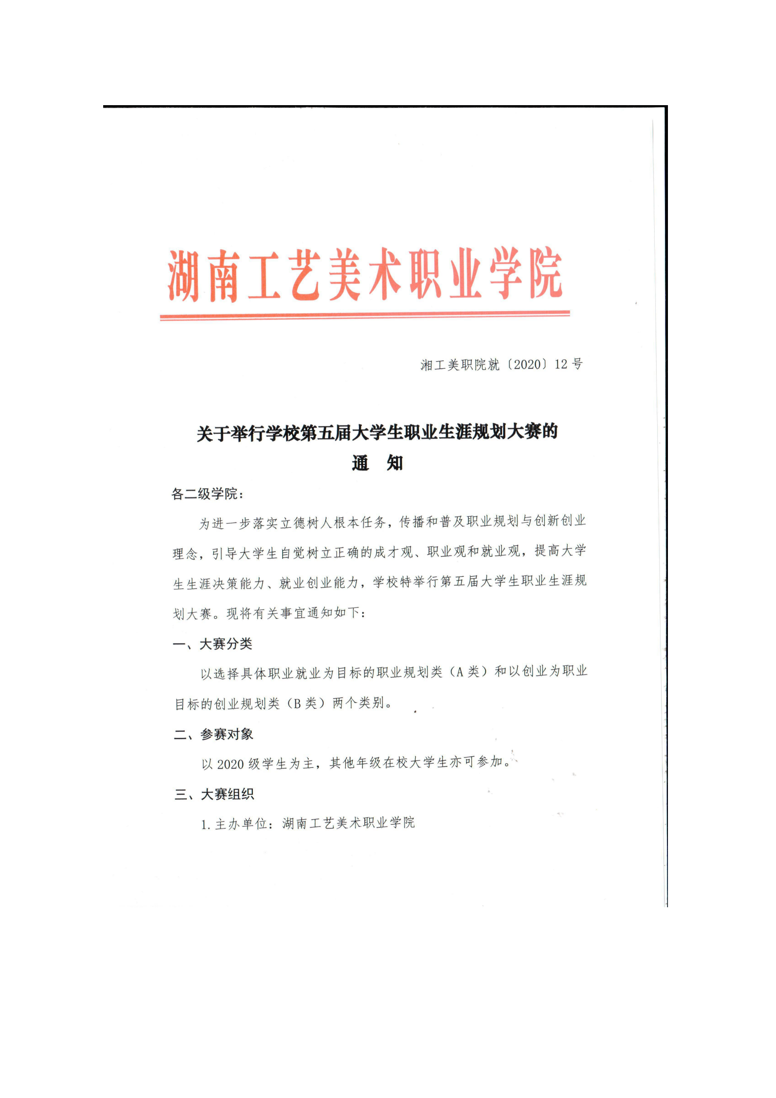 关于举行学校第五届大学生职业生涯规划大赛的的通知