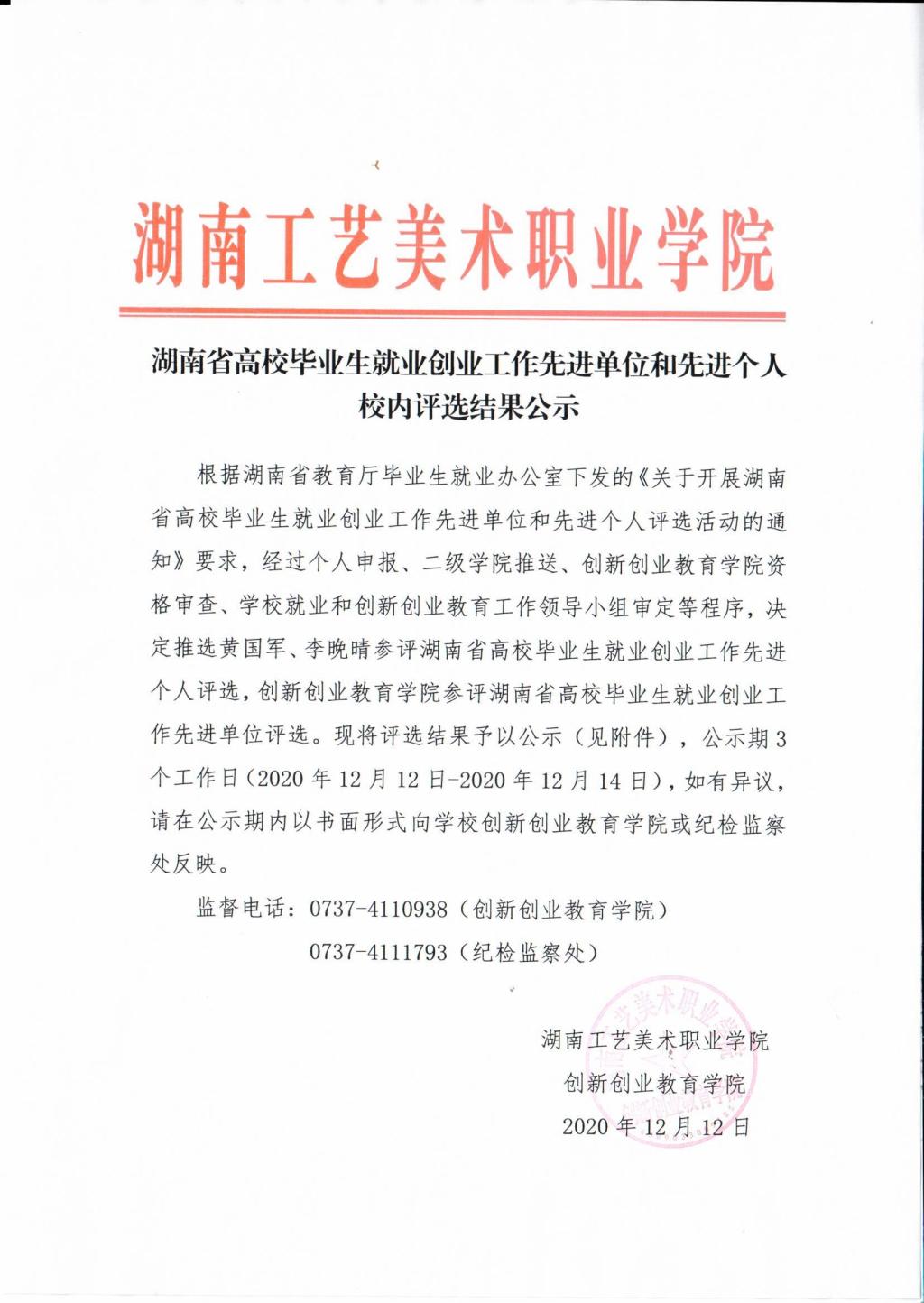 湖南省高校毕业生就业创业工作先进单位和先进个人校内评选结果公示