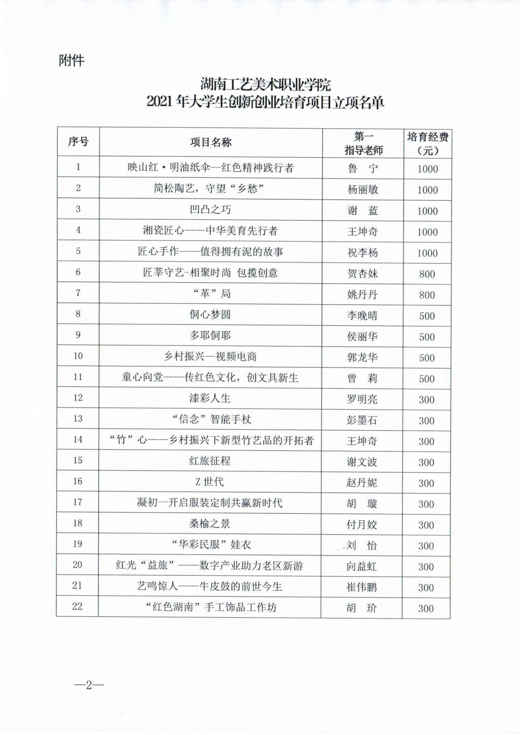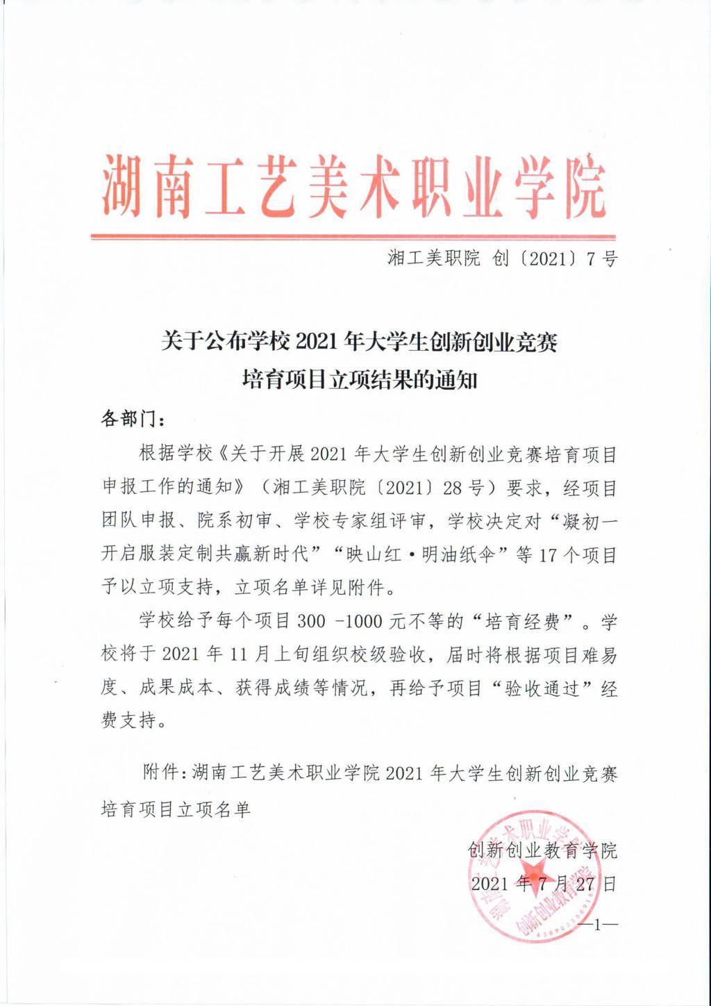 关于公布学校2021年大学生创新创业培育项目立项结果的通知