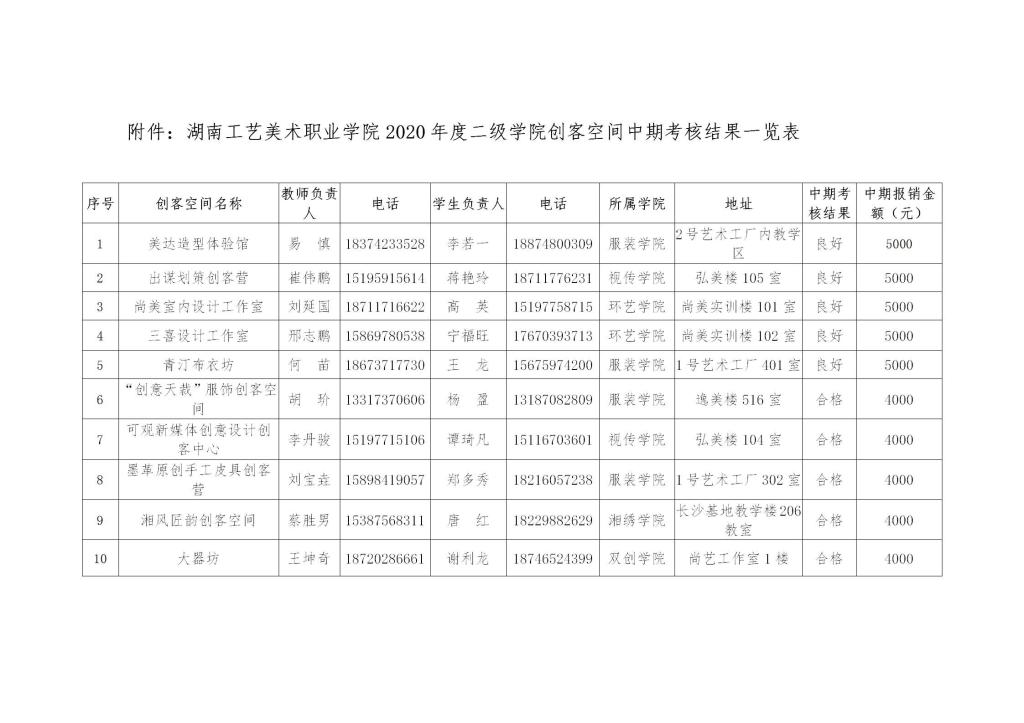 湘工美职院创〔2021〕15号 关于开展2021年二级学院创客空间中期验收的通知