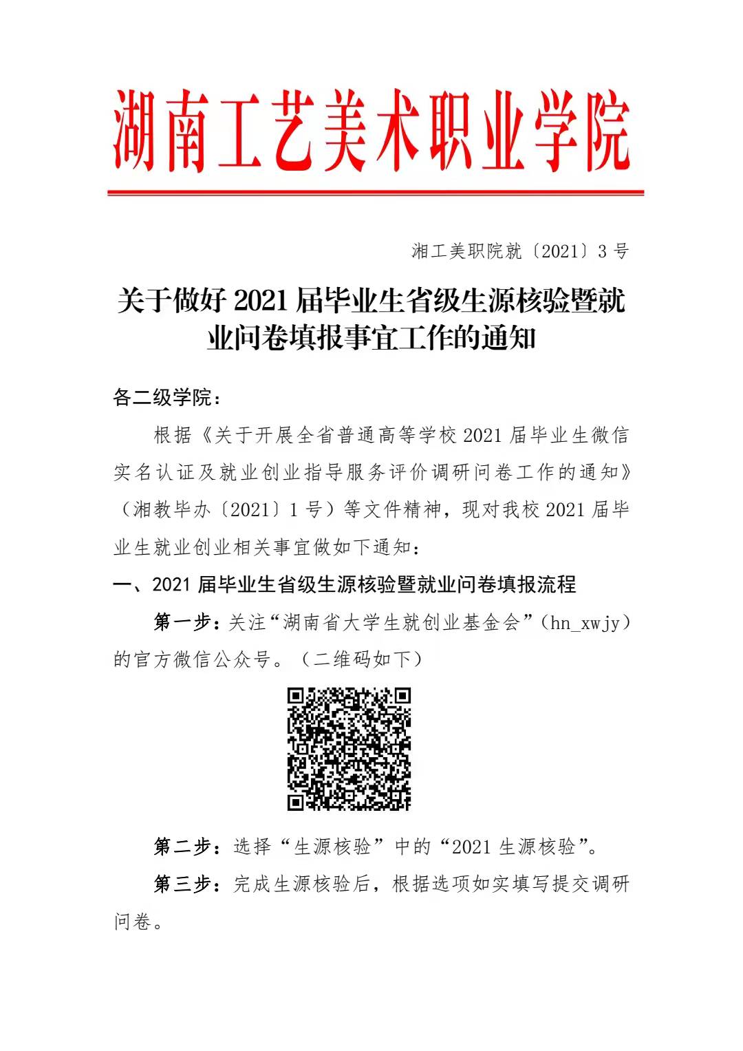 湘工美职院就〔2021〕3号关于做好2021届毕业生省级生源核验暨就业问卷填报事宜工作的通知1.30.pdf