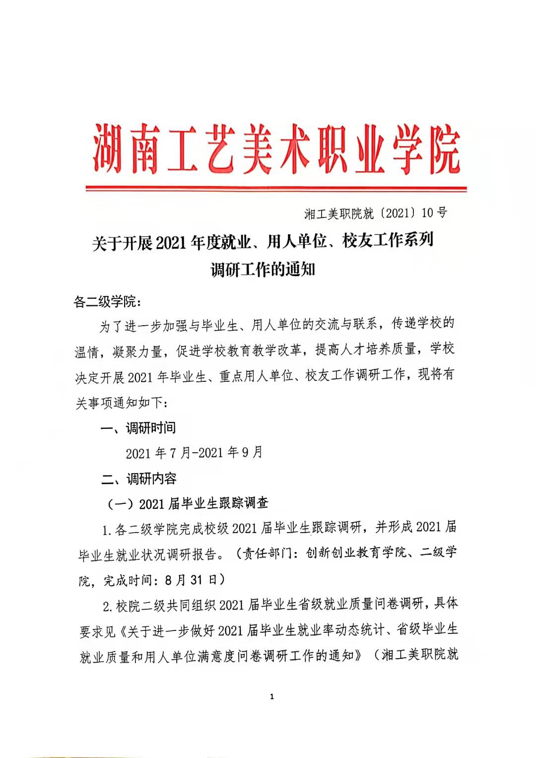 关于开展2021年度就业、用人单位、校友分会系列调研工作的通知.