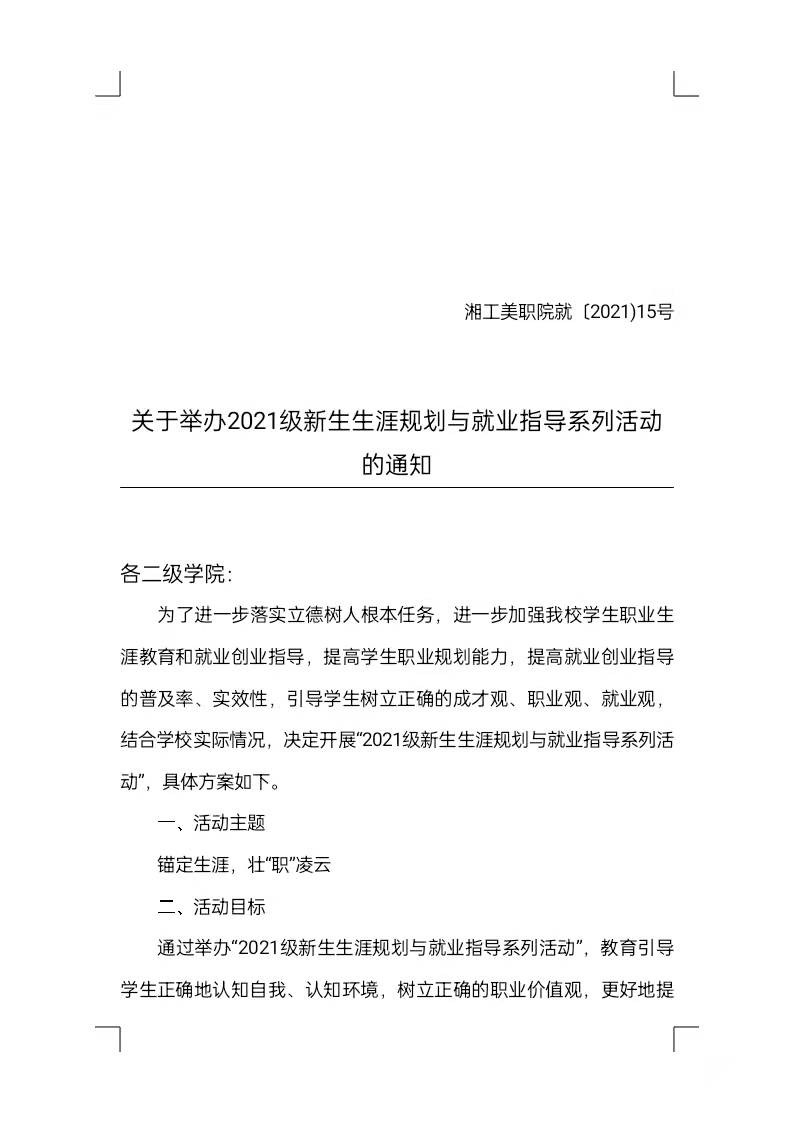 关于举办2021级新生生涯规划与就业指导系列活动的通知