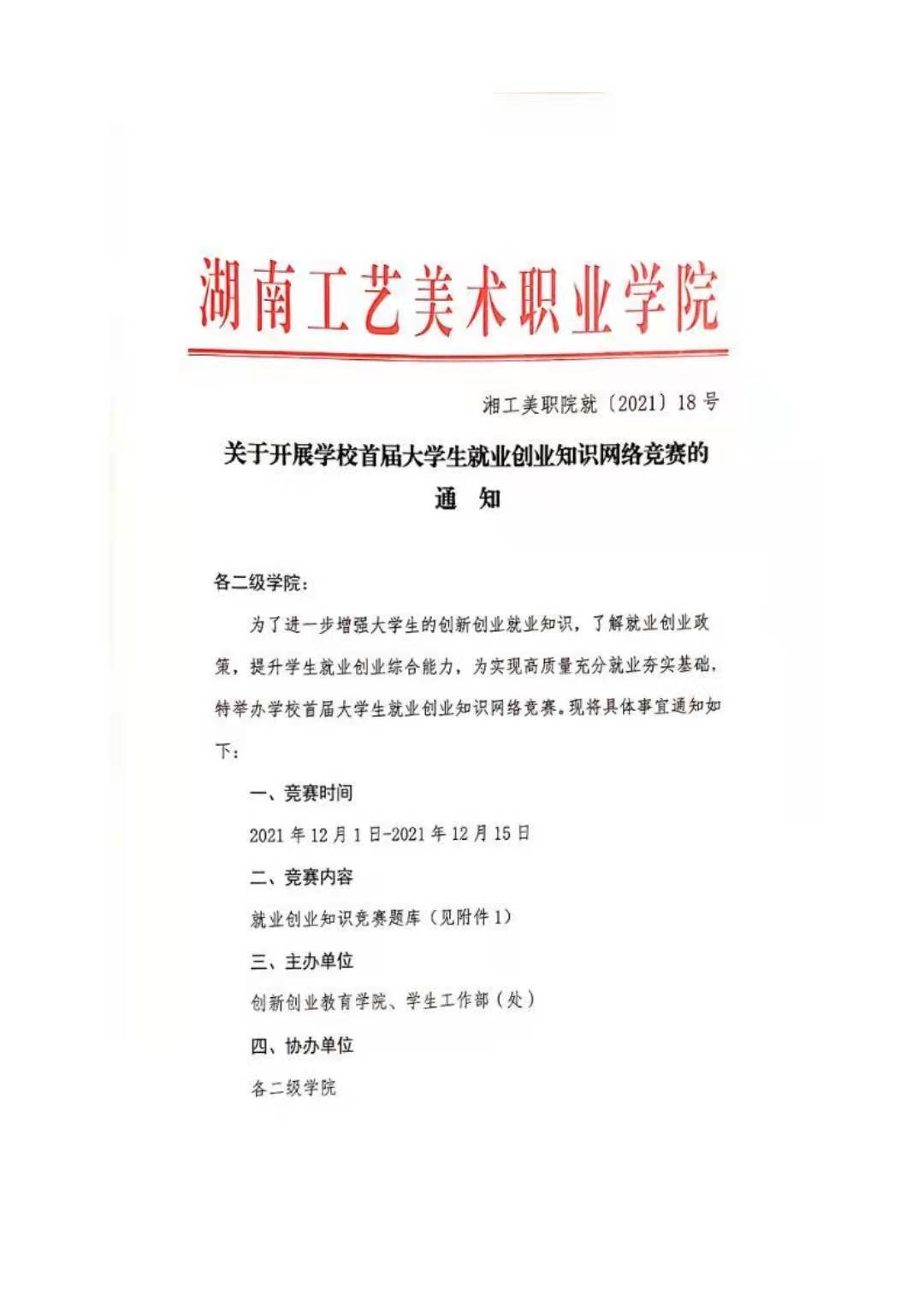 关于开展学校首届大学生就业创业知识网络竞赛的通知