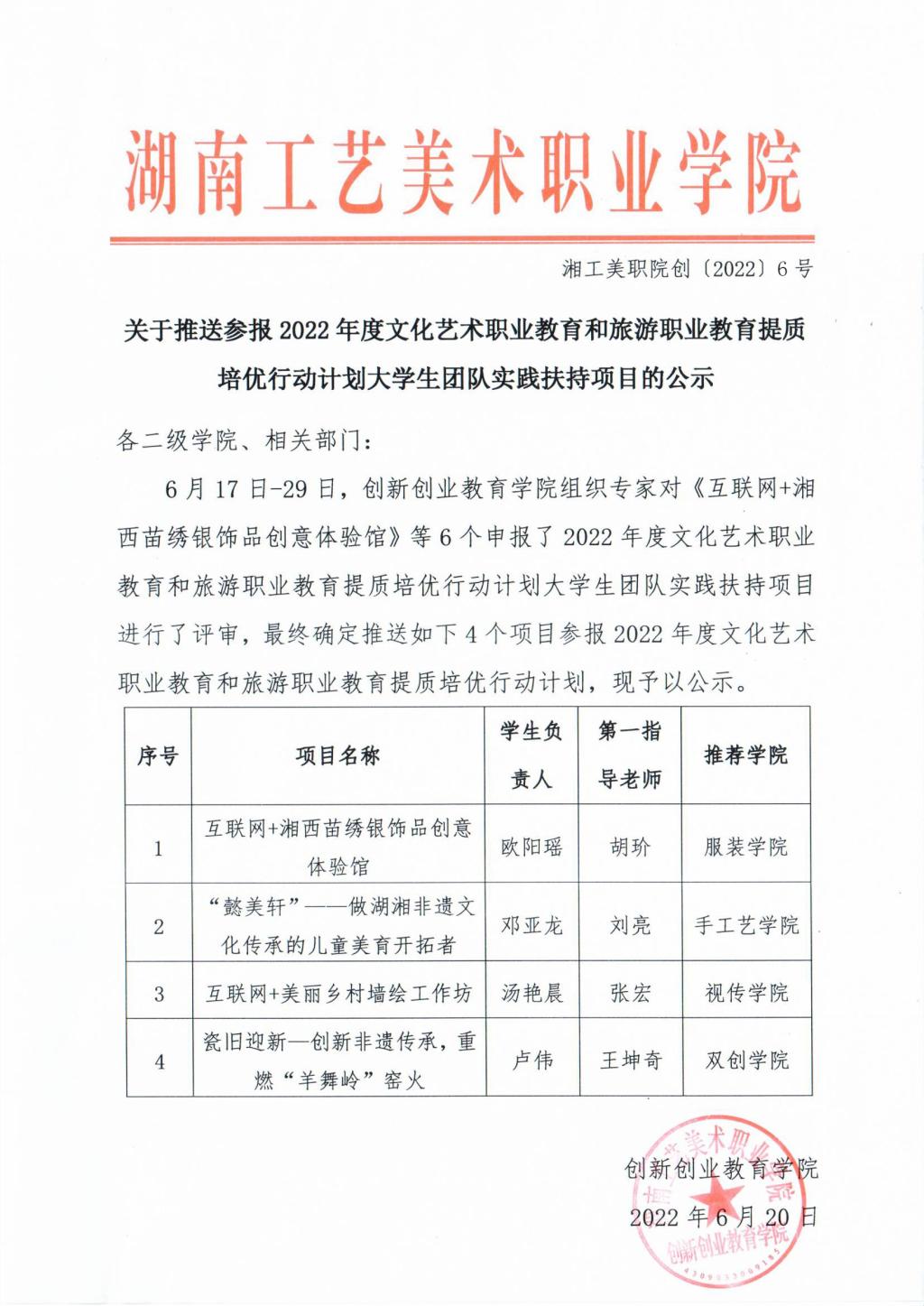 关于推送参报2022年度文化艺术职业教育和旅游职业教育提质培优行动计划大学生团队实践扶持项目的公示
