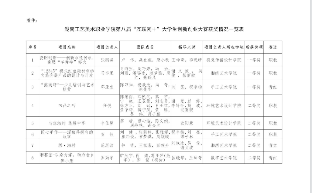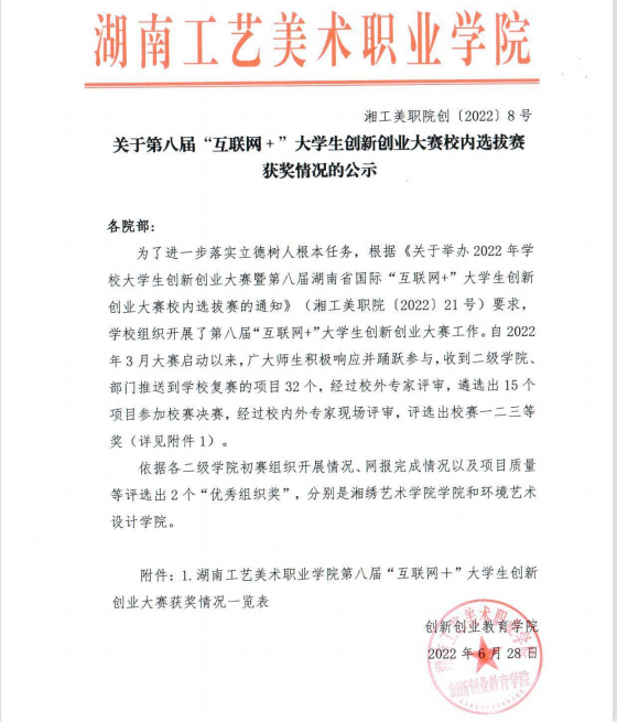 关于第八届“互联网+”大学生创新创业大赛校内选拔赛获奖情况的公示