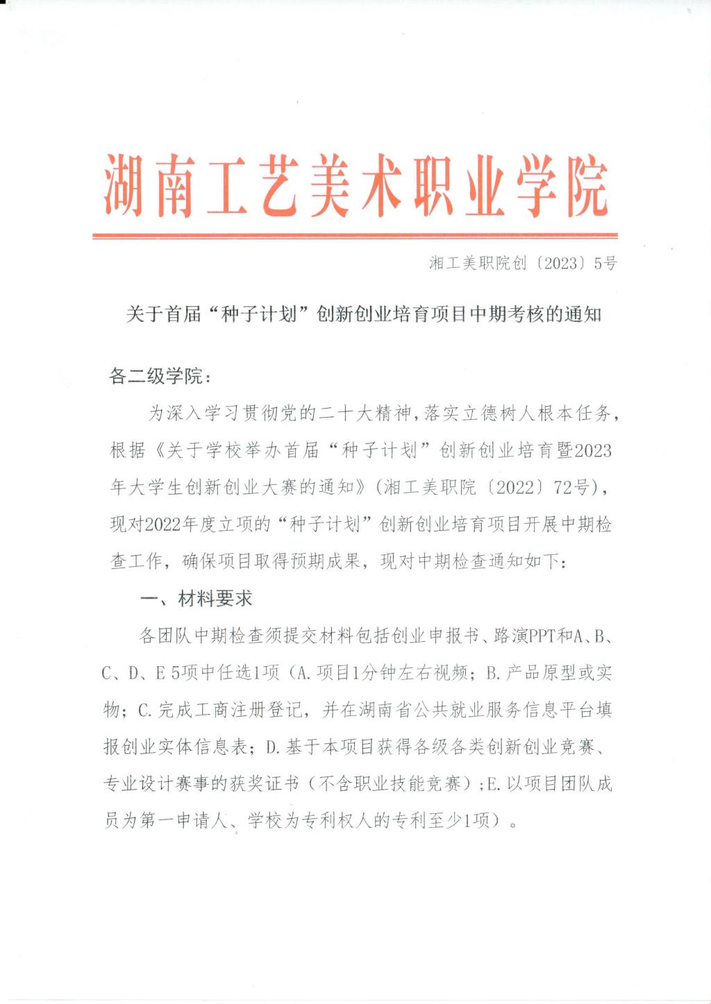 湘工美职院创〔2023〕5号 关于首届“种子计划”创新创业培育项目中期考核的通知-ylm改3.28(1)_01.pdf