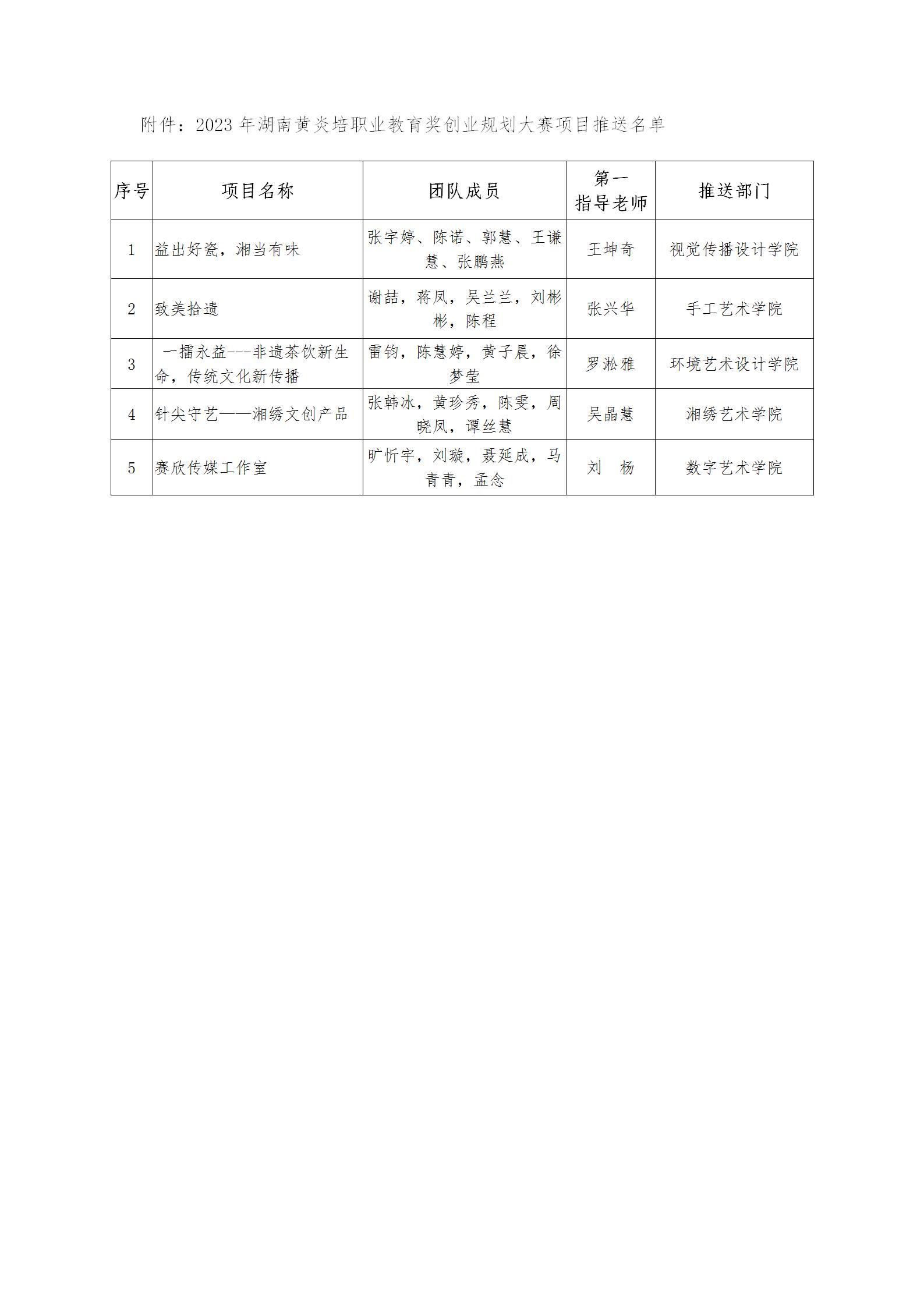 2023年湖南黄炎培职业教育奖创业规划大赛推参加省赛荐项目名单公示.pdf