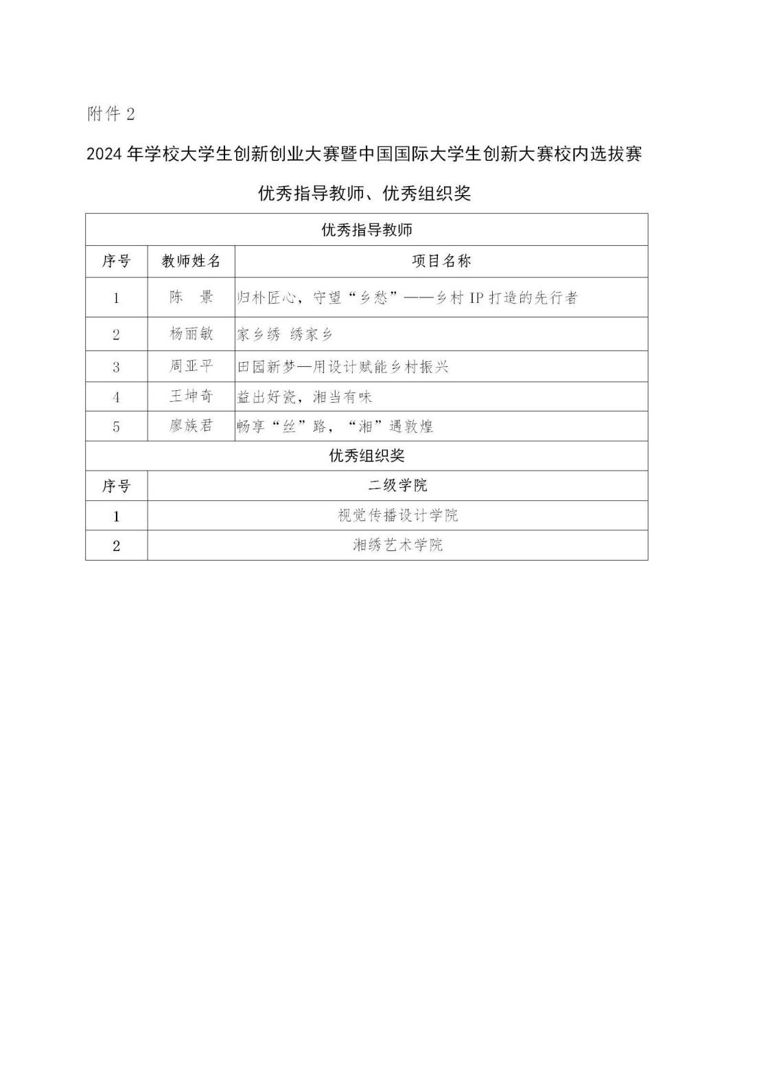 关于2024年学校大学生创新创业大赛暨中国国际大学生创新大赛校内选拔赛获奖情况公示 湘工美职院创〔2024〕9号.pdf