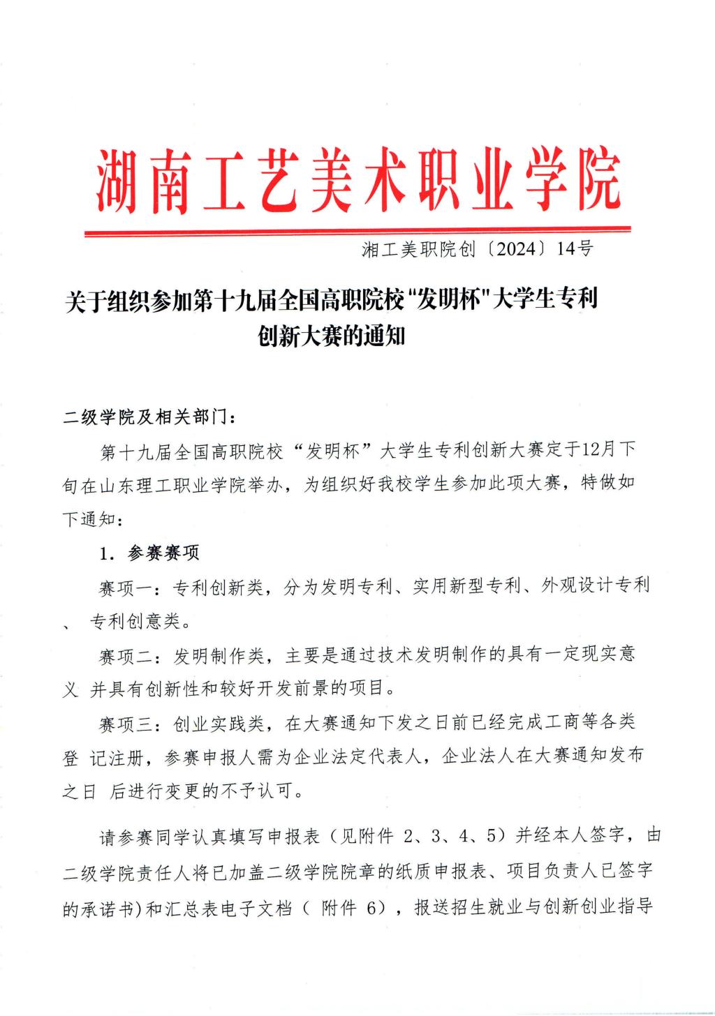 关于组织参加第十九届全国高职院校“发明杯”大学生专利创新大赛的通知
