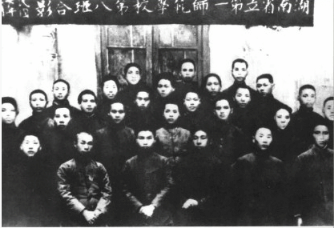 (1918年3月,湖南省立第一师范学校第八班合影。四排右二为毛泽东)