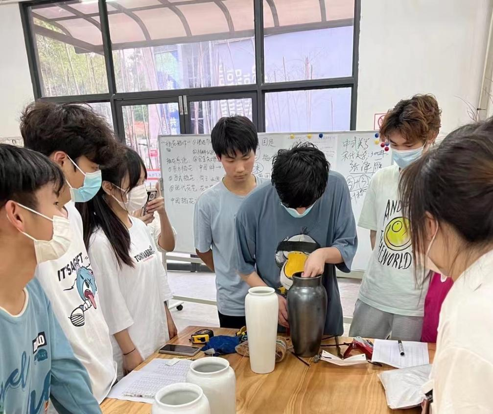 为了丰富校本课程,让学生们动手造物,用巧思装点生活环境,培养创新创业能力。于2022年4月11日和4 月13日晚上在6号艺术工厂102由环艺学院张海雁老师带领18名我校创新创业协会成员开展了“瓶花插作”创客课程。