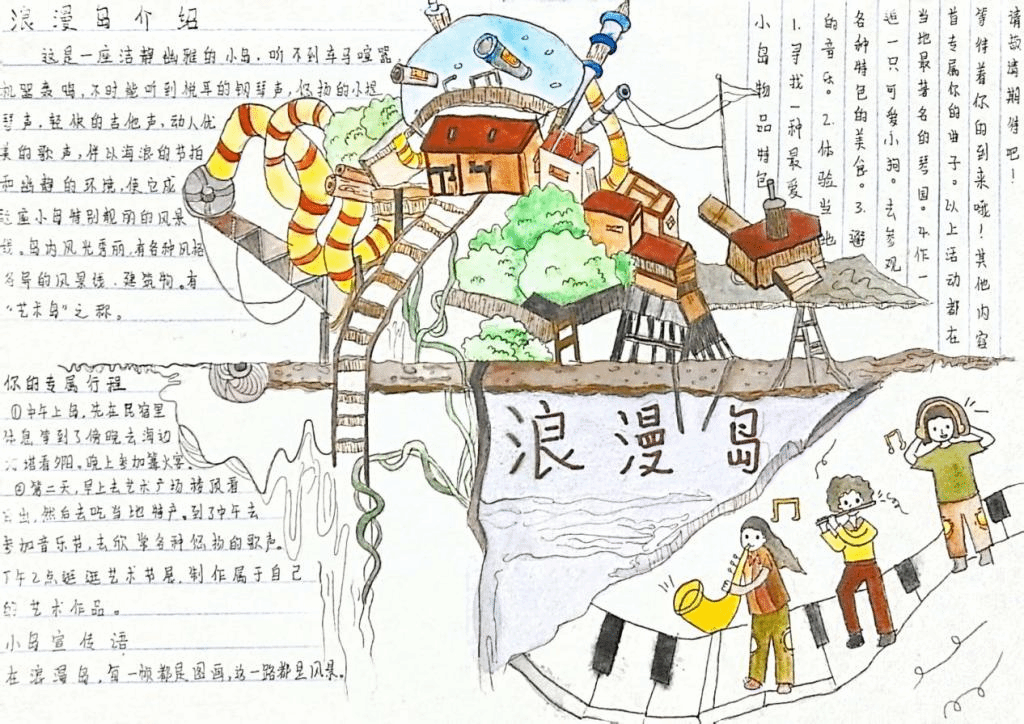 在就业创业教研室教师的指导下,2022级学生结合专业特色、个人特质,以本门课程“职业兴趣”教学内容为例,以“霍兰德六岛环游”为切入点,课中学生充分理解职业兴趣的内涵,掌握霍兰德职业兴趣理论并运用相关工作开展职业兴趣训练,课后学生结合所学专业,选取不同材料,采用不同的表现形式,多视角制作自己理想中的“岛屿”,特遴选出以下优秀作品。学生用画笔发现美、创造美,每件作品都充盈着学生的才情与志趣,让我们一起来欣赏2022级学生《高职生职业生涯与发展规划》“职业兴趣”课次的优秀作业吧!