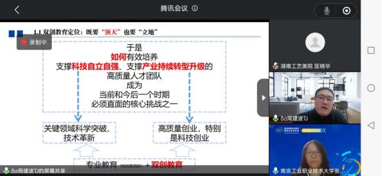 为了提升学校就业创业教育教学水平和课程建设水平,3月30日晚,我校就业创业专兼职教师参加了丽湖职教双创教育国际虚拟教研室第2期线上教研活动。本次活动由南京工业职业技术大学创新创业学院和天津轻工职业技术学院创业教育指导中心承办。会议由南京工业职业技术大学创新创业学院副院长张秀芹主持。
