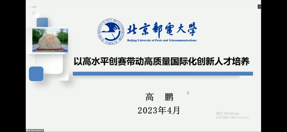 北京邮电大学国际学院副院长高鹏从中国国际“互利网+”大赛发展与国际化转变、北京邮电大学以赛促教经验分享和国际化视角下以赛育人的实践与探索三个方面分享了北京邮电大学在赛事推动、国际化创新人才培养方面的经验。