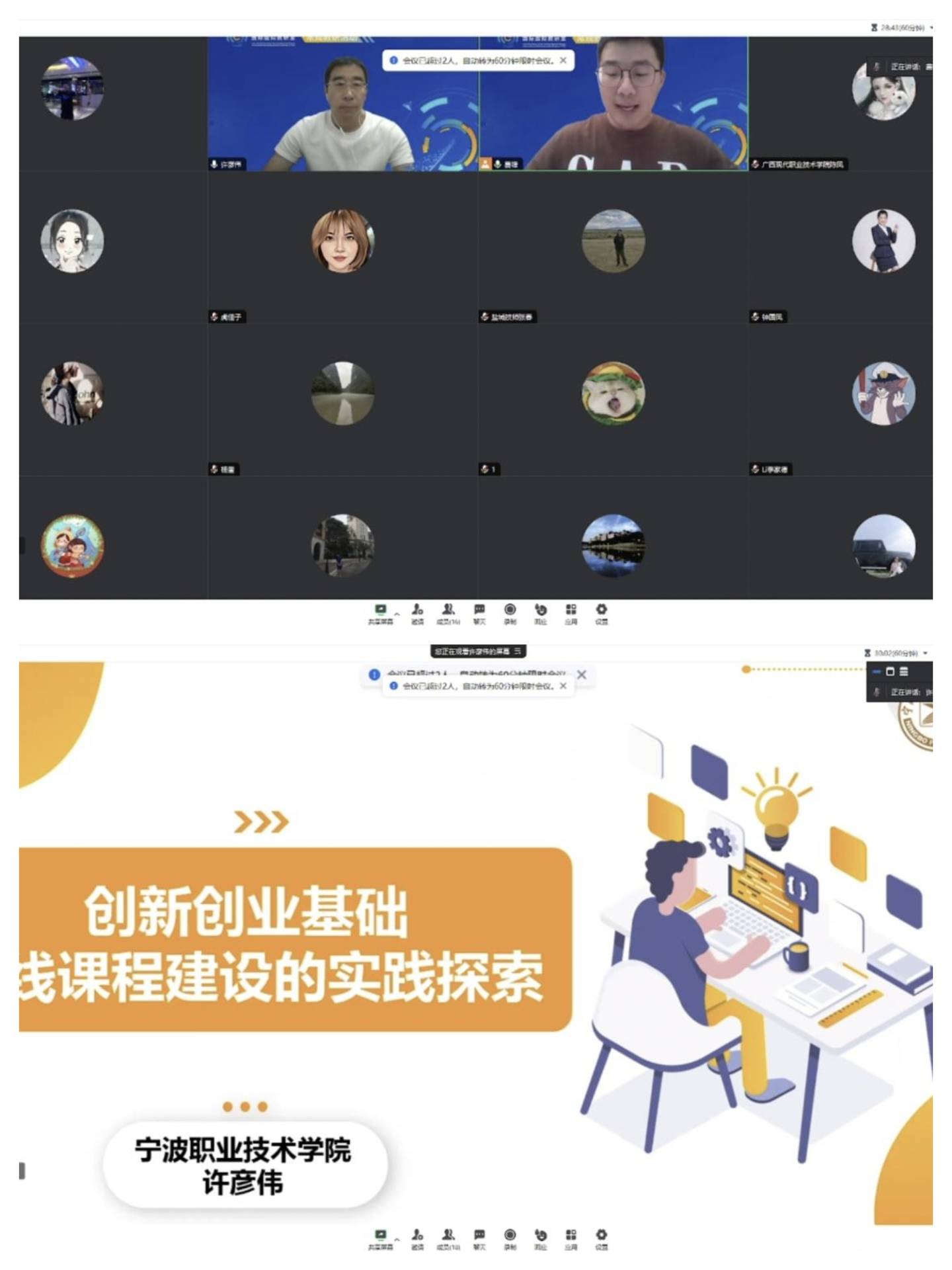 10月25日晚,我校就业创业专兼职教师参加了丽湖职教双创教育国际虚拟教研室第9期线上教研活动。本次活动由金华职业技术学院承办。本期教研活动为创新创业在线课程建设与运营专题,由金华职业技术学院让大象飞工作室负责人费锋主持。