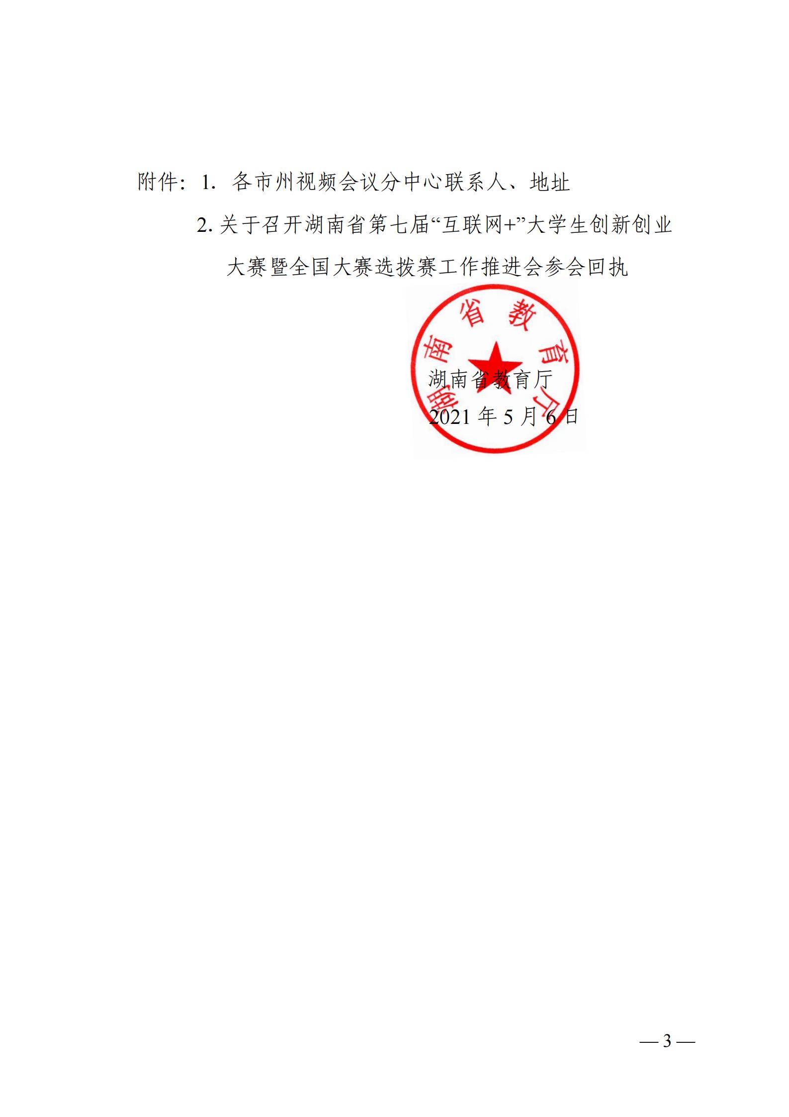 关于召开湖南省第七届“互联网+”大学生创新创业大赛暨全国大赛选拨赛工作推进会的通知