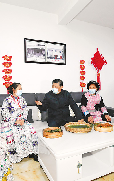 2月3日至5日,中共中央总书记、国家主席、中央军委主席习近平来到贵州考察调研,看望慰问各族干部群众,向全国各族人民致以美好的新春祝福。这是3日下午,习近平在毕节市黔西县新仁苗族乡化屋村考察结束时,乡亲们依依不舍簇拥着总书记,齐唱苗家留客歌。 新华社记者 谢环驰摄 |