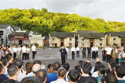 离开朱小红家,习近平步行察看村容村貌。雨后的沙洲村青山滴翠,彩霞满天。闻讯赶来的村民和游客们高声欢呼“总书记好!”习近平频频向大家挥手致意,对乡亲们说,“半条被子”的故事让人民群众认识了共产党,把党当成自己人。正因为有人民群众支持和拥护,我们党才能走过辉煌历程,取得伟大成就。沙洲村是“半条被子”故事的发生地,今天我专门来这里看望乡亲们。作为一名中国共产党员,我要不断接受教育、接受洗礼。我们党坚持为人民服务,不仅仅是一句口号,而是坚持不懈的实际行动。我们即将全面建成小康社会,接下来要为全面建成社会主义现代化强国而奋斗,让老百姓生活更加富裕、更加幸福。