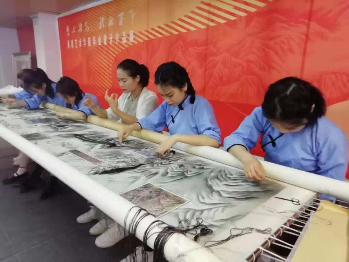 湘绣艺术学院师生们运用各式精妙的针法,绣制了《长征路上》《遵义会议》等一批红色主题,再现了红军长征等重要历史事件,绣“活”了“红色经典”场景。