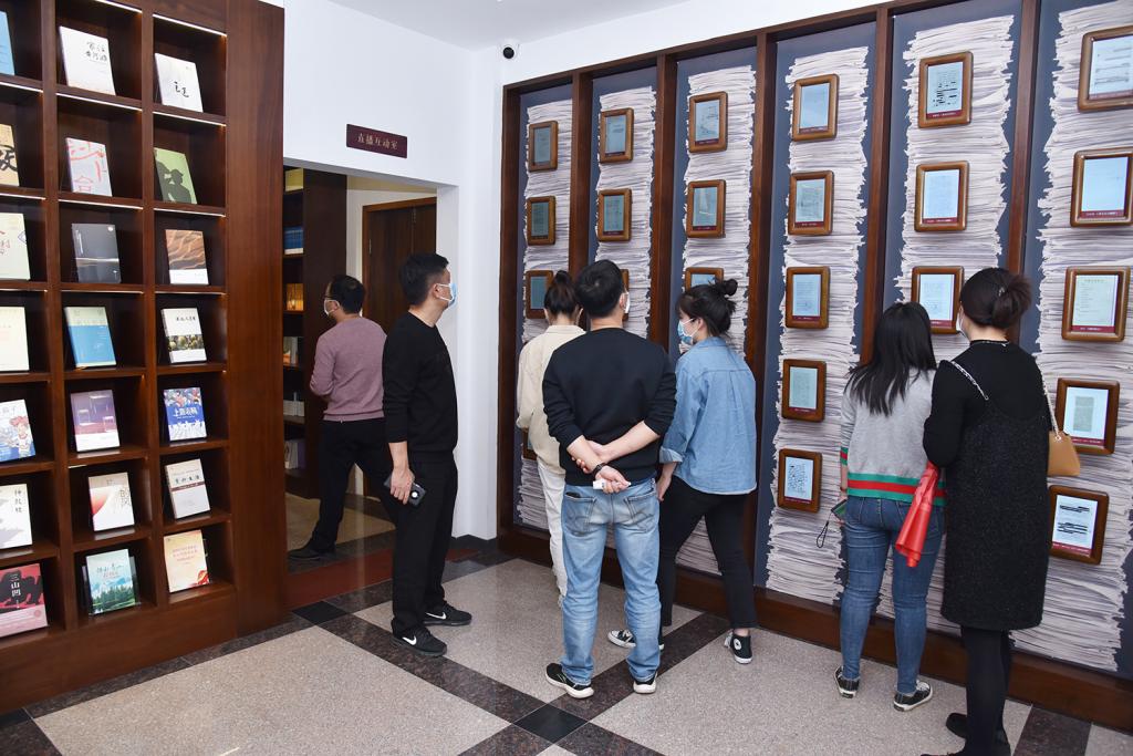 在人民文学出版社、梁晓声、贾平凹三家清溪书屋内,党员们一边参观,一边了解学校设计团队在短短21天完成了三家书屋设计出品背后的故事,感受美院人用自己扎实的专业技术功底,坚毅不屈的斗志,迎难而上的决心,在清溪这片土地上以实际行动践行的“立波精神”内涵。