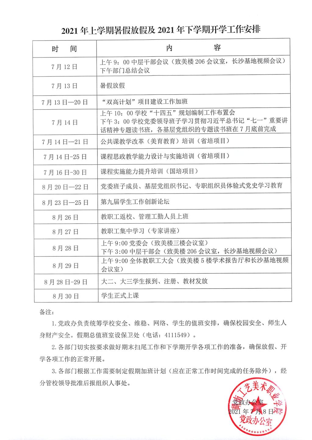2021年上学期暑假放假及2021年下学期开学工作安排