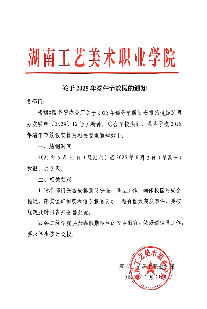 关于2025年端午节放假的通知
