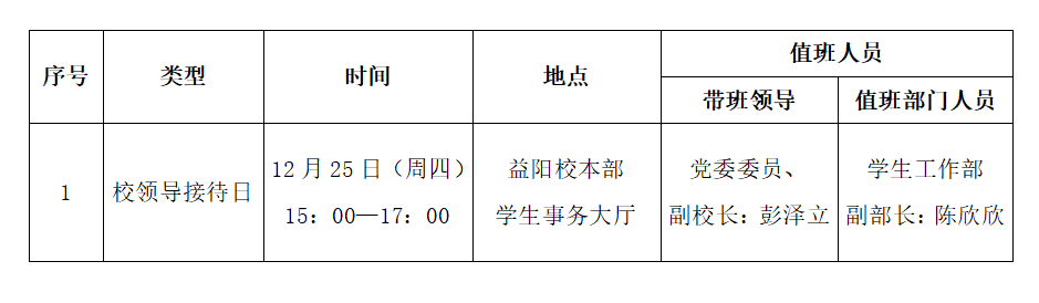 校领导接待日(第16周)安排