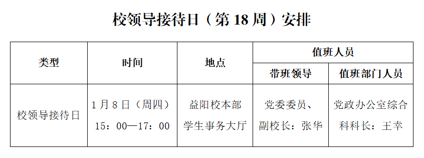 校领导接待日(第18周)安排